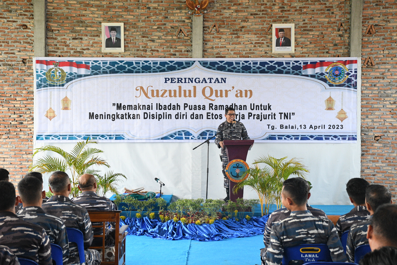 Komandan Lanal Tanjung Balai Asahana Letkol Laut (P) Aan Prana Tuah Sebayang, S.E., D.W.C., menyampaikan bahwa peringatan Nuzulul Qur’an tahun ini mengusung tema” Memaknai Ibadah Puasa Ramadhan Untuk Meningkatkan Disiplin Diri dan Etos Kerja Prajurit TNI”, dengan memperingati Nuzulul Qur’an yang merupakan peristiwa dimana kitab suci umat Muslim (Al-Quran) diturunkan kepada Nabi Muhammad SAW. Hendaklah kita mengambil hikmahnya dan mengimplementasikan di kehidupan sehari-hari.