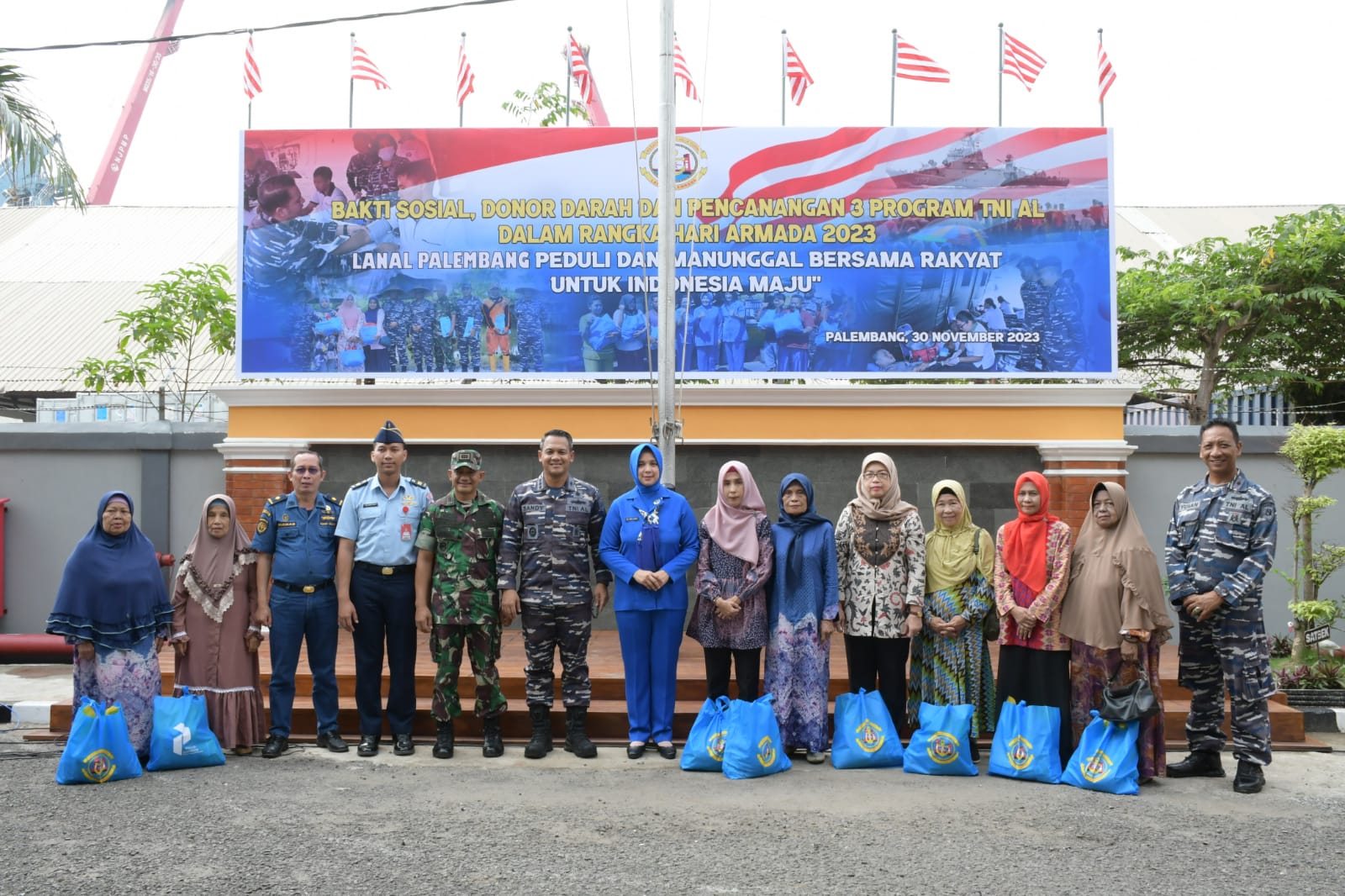 TNI AL, Palembang,Sehatynews.id – Peringati HUT Armada RI Tahun 2023, Pangkalan TNI Angkatan Laut (Lanal) Palembang gelar kegiatan Bhakti Sosial dan Donor Darah serta Pencanangan 3 Program TNI Angkatan Laut, bertempat di Lapangan Apel Mako Lanal Palembang, Kamis (30/11/2023).